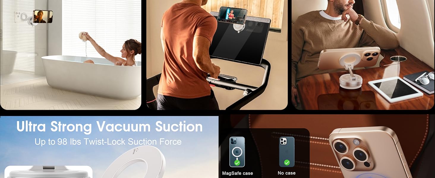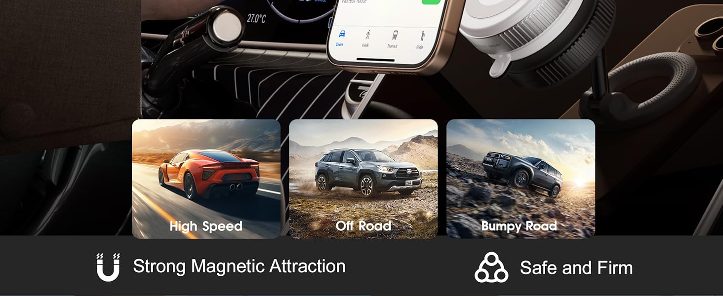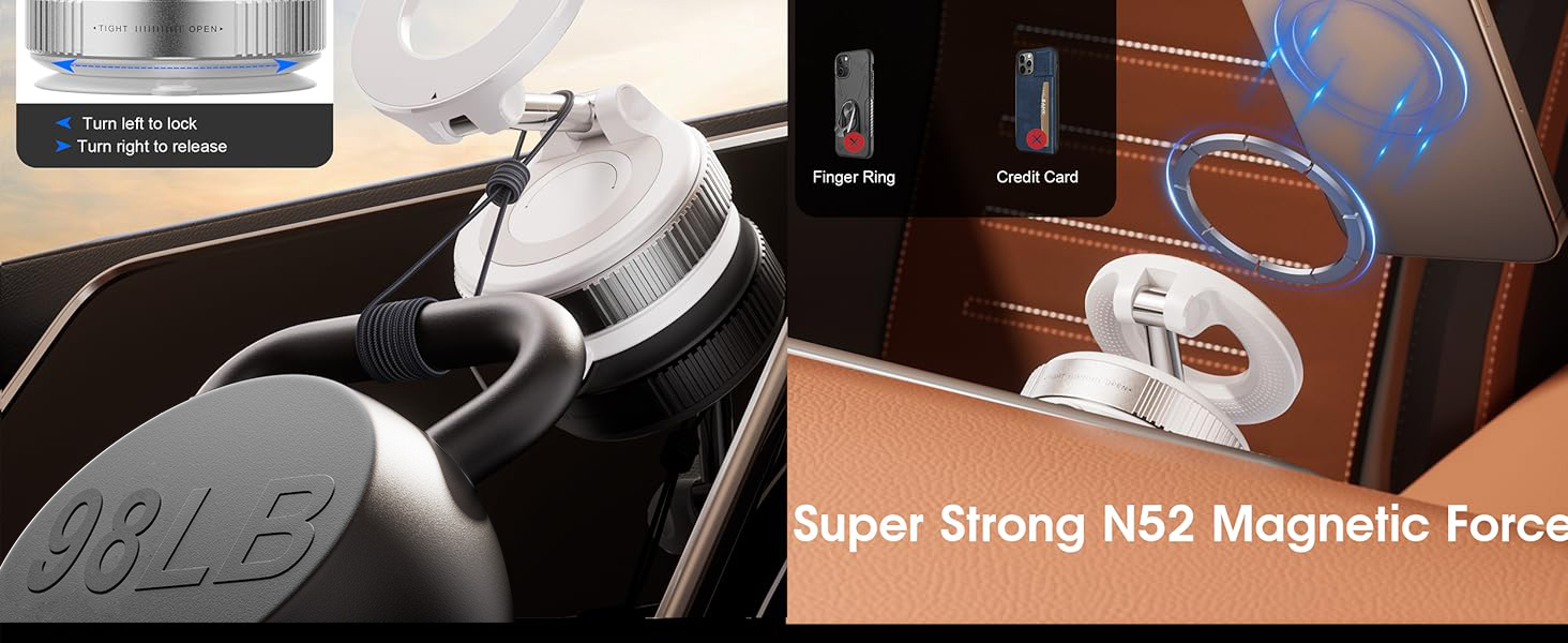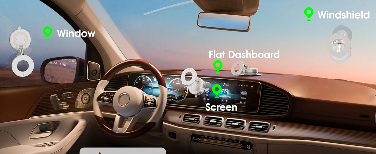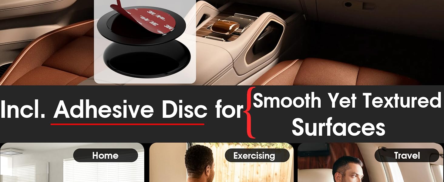 360° Multi-Angle Rotation, Be Sure to Use the Included Adhesive Pad for smooth yet textured surfaces to ensure a secure mount. Avoid mounting on fluctuating or uneven surfaces., How to Check Surface Smoothness Without the Adhesive Pad: Scratch a circle with your fingernail—if the surface feels smooth and makes no sound, it’s suitable for mounting without the adhesive pad., NOT RECOMMENDED Mounting the Adhesive Pad on Uneven Car Dashboard. |